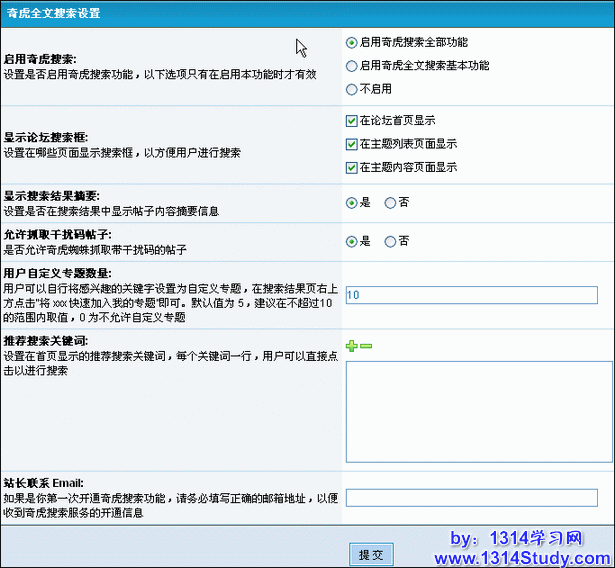 注意: 由于使用了蜘蛛技术,首次开启本功能后,可能需要几天时间用以建立您论坛的数据索引和提供搜索服务。