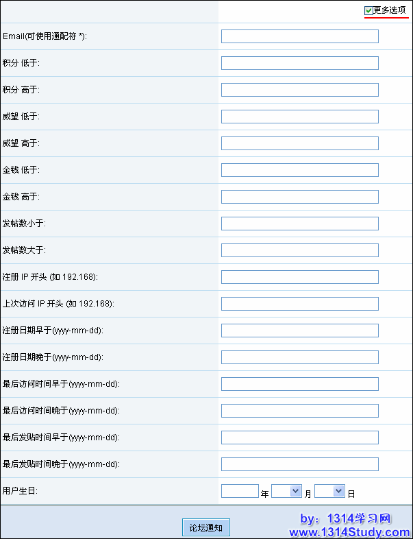 举例:管理员有主要消息通知论坛的所有会员,一个会员一个会员的发短消息通知显然不现实,所以在后台直接发送论坛通知就可以了,用户名那里可以留空,会同时发通知给所有会员,这样即简单又方便。