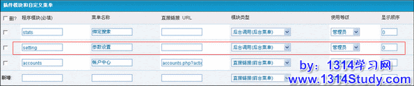 后台调用(后台菜单):可在后台插件设置中为此插件增添一个管理模块,模块文件名指派为“./plugins/插件目录/插件模块名.inc.php”,由 admincp.php 调用此模块。