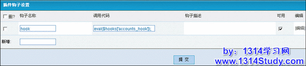 最后调用是在需要修改代码的页面增嵌入例如 eval($hooks['accounts_hook']); 这样的代码即可。