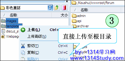 4.如果确认风格包符合上边的标准,那么你可以直接上传images和templates文件夹到论坛根目录下覆盖。如图 3 所示: