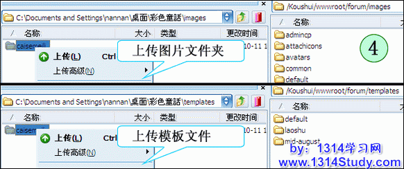 5.如果风格作者没有这么打包,那么你可以找到图片文件包,将其上传到论坛目录下的images目录下,然后找到模板文件夹上传到论坛目录下的templates目录下。如图 4 所示: