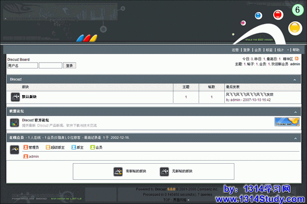 7.然后点击文本框上访的更新css缓存,回到首页,刷新,然后在底部界面风格内选择彩色童话,即可看到安装的新风格。如图 6 ,看下效果吧。