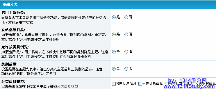 设置是否在本版块启用主题分类功能,您需要同时设定相应的分类选项,才能启用本功能。
