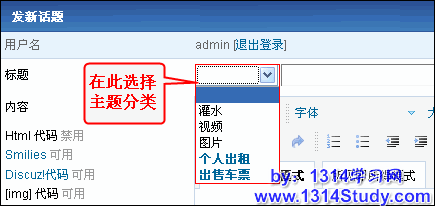 添加好主题分类后,我们就可以在开启了主题分类的相应版块发帖选择主题分类了,如图 7 所示: