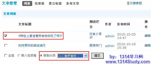 移入垃圾箱:把想要删除的文章移入垃圾箱,选择好要删除的文章,直接移动到垃圾箱即可,如下图所示:
