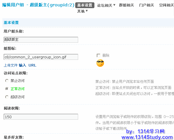 4)阅读权限:设置用户浏览帖子或附件的权限级别,范围 0~255,0 为禁止用户浏览任何帖子或附件。当用户的阅读权限小于帖子或附件的阅读权限许可(默认时为 1)时,用户将不能阅读该帖子或下载该附件。