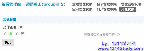 说明:Discuz! X1.5 版本支持批量编辑管理组管理权限,即一次可以编辑多个管理组。