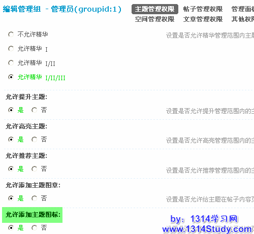 操作路径:【后台】=>【管理组】=>【编辑管理组】=>【主题管理权限】=> 允许添加主题图标选择“是”