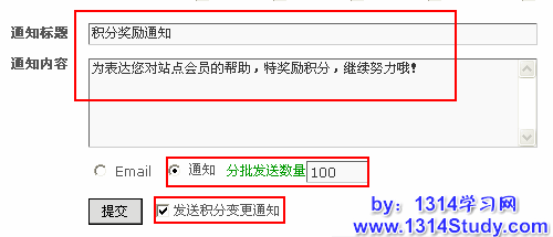 发送完成后,会提示:用户积分奖惩成功执行,并已通知相关用户。