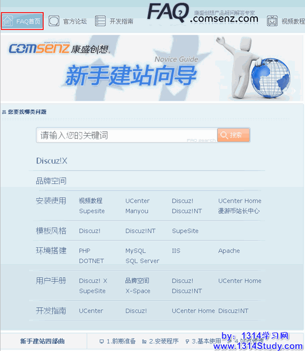 如下图所示,是康盛官方的FAQ,按照产品、热门主题和标签分类,能有效解决站长问题,解决站长查询、发问的烦恼。