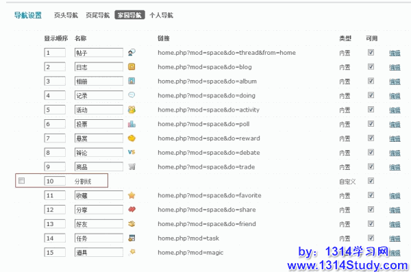 备注:这里当家园导航内容很多时,我们还可以对家园导航项进行划分。不要担心,只要添加一个分割线就OK了,很简单吧。大大减轻了站长的操作成本。