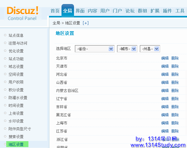 站长或者管理员可以自己编辑地区数据、根据所在地区的不同,增加、删除和修改地区名称等。