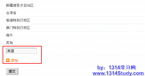 如果要在某一城市下面添加地区,可以选择好这个省份,然后在下面添加。