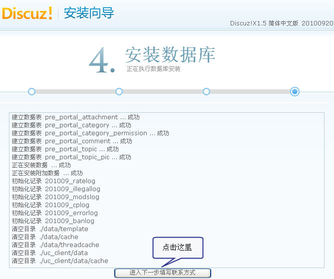 填写好 Discuz! X1.5 数据库信息及管理员信息。