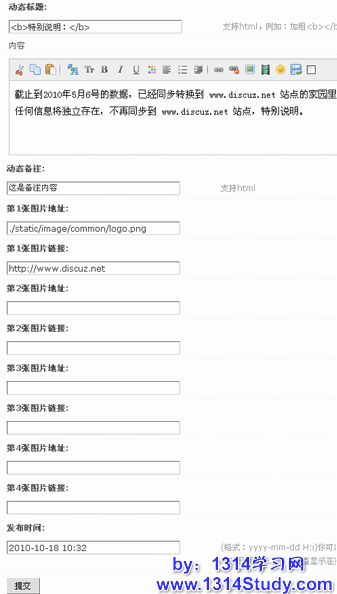 在【动态管理】=>【全局动态】中,填写好要发表的全局动态的标题、内容、备注、图片地址和链接、发布时间等信息后,就可以发表了。