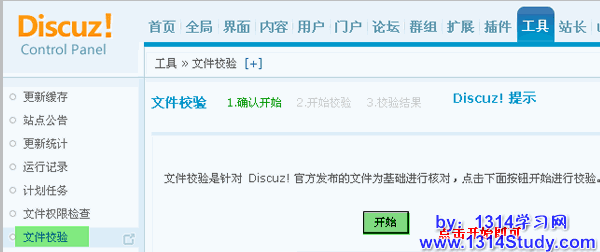 操作路径:【后台】=>【工具】=>【文件校验】
