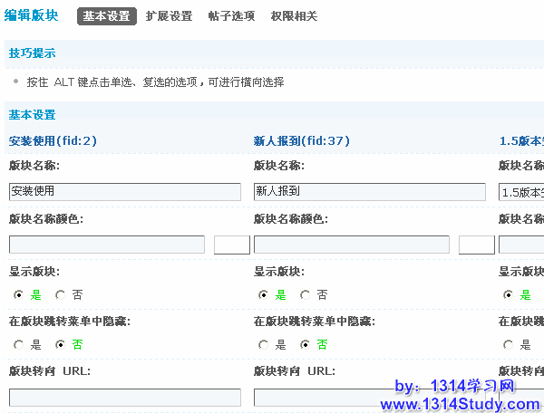 批量编辑版块,即在要编辑版块的时候,选择多个版块,然后点击批量编辑,就可以进入批量编辑界面。