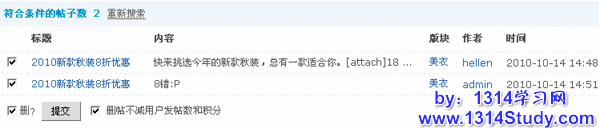 2、删贴不减用户发帖数和积分:若勾选则对用户发帖数和积分数没有影响,否则会减去用户相应的发帖数和积分。