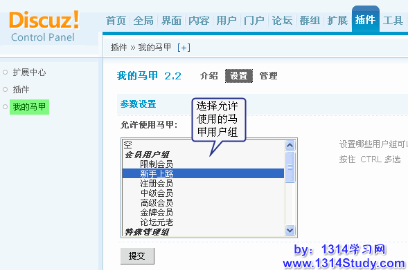 设置可使用该功能的用户组,即可在前台开启“马甲”操作。
