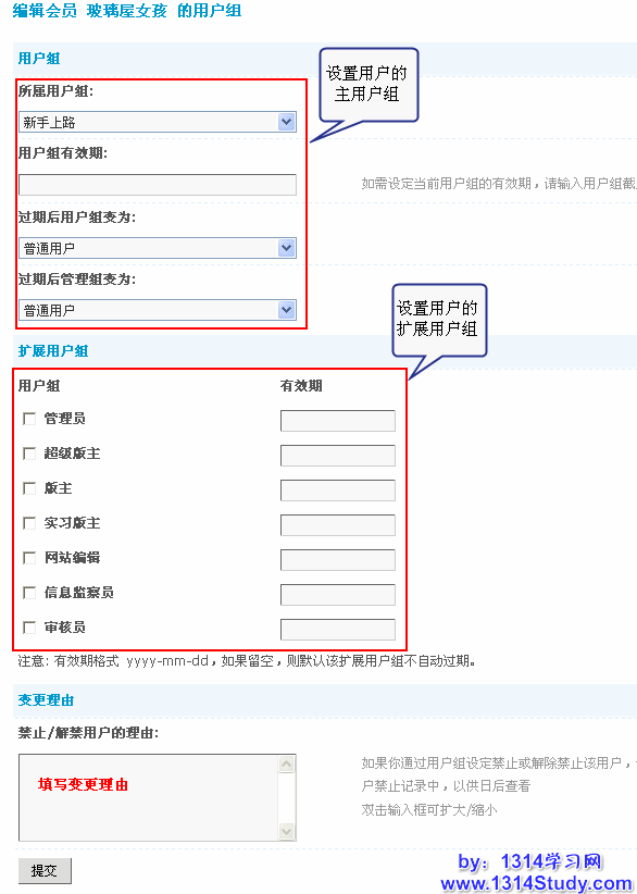 用户组分为主用户组和扩展用户组,会员在网站上的权限是以主用户组为准,同时通过扩展用户组,延伸会员在特殊版块的权限,如:浏览,发新话题,发表回复,下载/查看附件,上传附件/图片等权限。