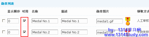 必须是可用的勋章才可以给用户颁发,操作路径:【后台】=>【扩展】=>【勋章中心】设置可用的勋章和领取方式。