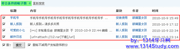 论坛批量删帖仅用于删除论坛中违规帖子使用,系统将根据所输入的帖子的信息(包括:所在版块、发表时间范围、发帖用户名、发帖IP、内容关键字、内容最小长度)来获取帖子,然后进行批量删除。如您需要批量删除历史旧帖,建议使用论坛批量主题管理功能。