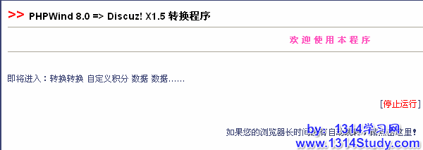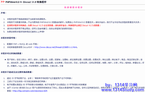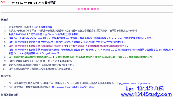 本程序只适用于 Phpwind 8.0 版本的程序。转换程序前请认真阅读转换程序中的转换说明。