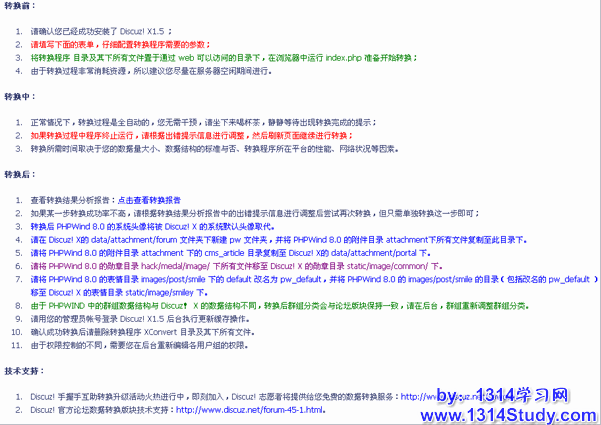 2、Discuz! 官方论坛数据转换版块技术支持:http://www.discuz.net/forum-45-1.html。