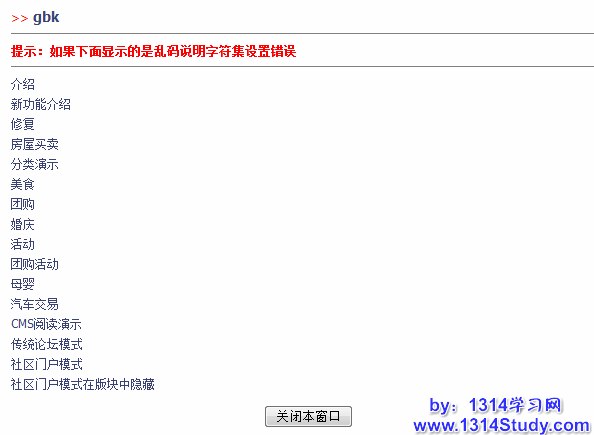 下面举个例子:配置好数据库信息,选择字符集为 GBK ,点击“检查此设置”,效果如下图所示。显然这个显示是正确的,说明 pw 库的字符集就是 GBK。