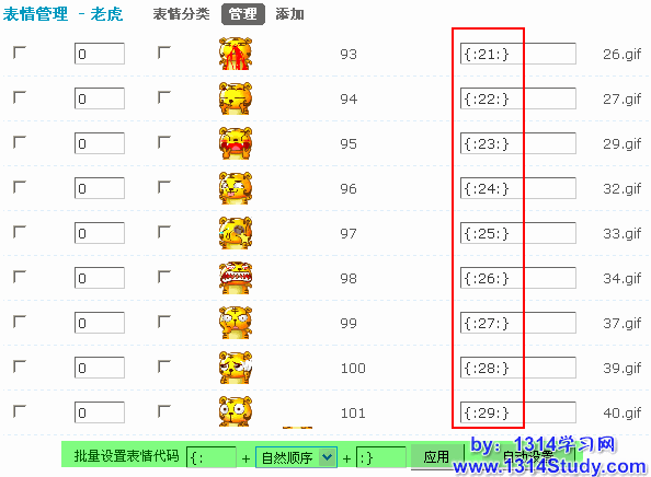 可以批量设置表情代码。