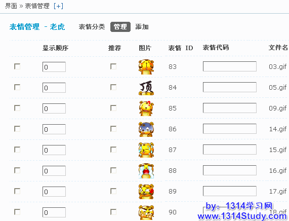 然后,【后台】=>【界面】=>【表情管理】,即可看到如下图所示: