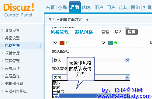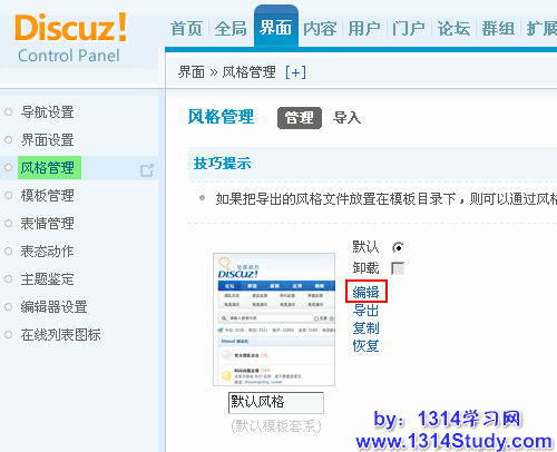 【后台】=>【界面】=>【风格管理】=> 点击编辑,如下图所示: