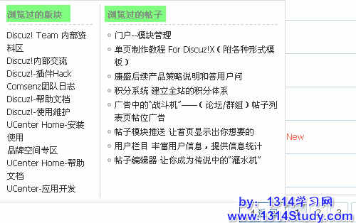版块浏览功能使得用户浏览论坛时更方便快捷,更符合大众的使用习惯,提高阅读效率,节省时间,减少操作步骤,是Discuz! X1.5版本中重构代码时所考虑的细节之一。Discuz! X1.5 版本的版块浏览功能包括八项细节化、人性化改进,其中包括:新窗口打开浏览、精华/推荐帖快速浏览、最近浏览记录查看等等,大大减少了浏览者的点击次数。会员在版块列表和帖子浏览中的显示效果如下图所示:
