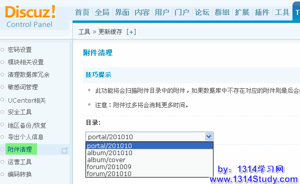 此功能将会扫描附件目录中的附件,如果数据库中不存在对应的附件则最后会给出列表是否进行删除操作。
