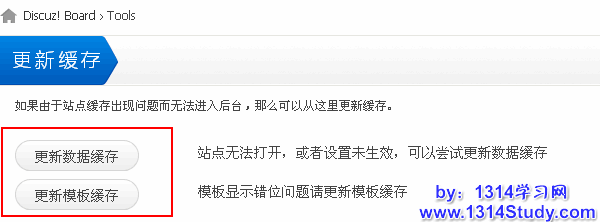 如果由于站点缓存出现问题而无法进入后台,那么可以从这里更新缓存。