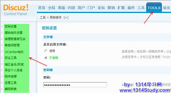 Tools 外部接口是在站点无法访问的时候应急处理站点问题的入口,请保存好这个密码,不要透露给任何人,第一次使用无密码,请自行设置。