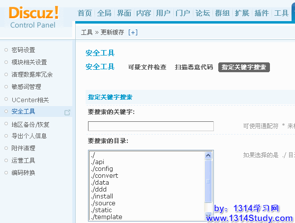 1、本功能不会搜索附件目录与模板目录中的文件,请先使用“可疑文件检查”来检索这些目录中是否有PHP文件。