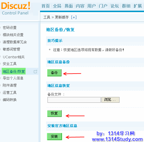 备份、恢复和安装官方地区信息数据