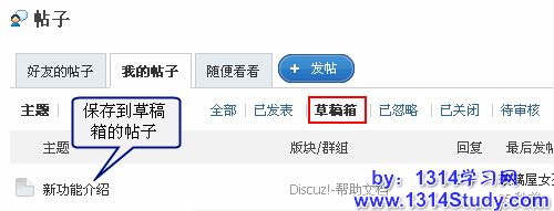 会员可以到“我的草稿箱”找到未发表的帖子再次进行修改后发布,比如新产品发布,或者站内即将开展一次活动,您可以提前编写好帖子内容,先存入草搞箱,当产品发布或者活动开始的时候编辑草稿箱中的相关帖子,进行发布。