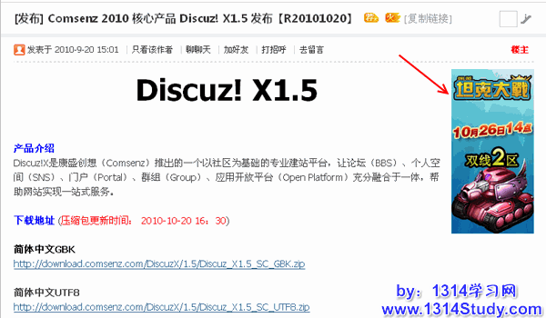 展现方式:帖位广告显示于帖子列表页第一页的帖子位置,可以模拟出一个具有广告意义的帖子地址,吸引访问者的注意力。