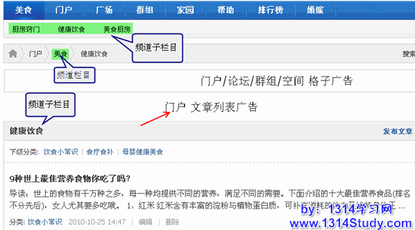 展现方式:文章广告显示于频道文章分类的文章列表页面,分为顶部、底部 2 个投放位置。