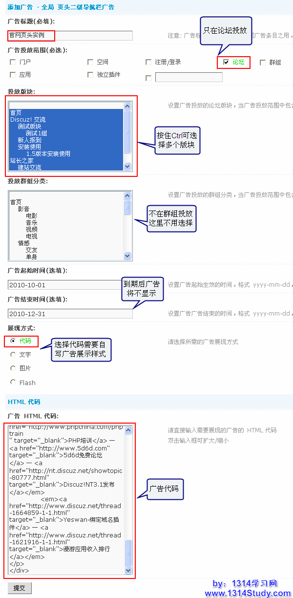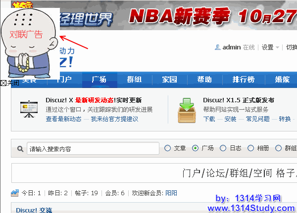 和 Discuz! X1 相比投放范围增加了门户和空间的投放。