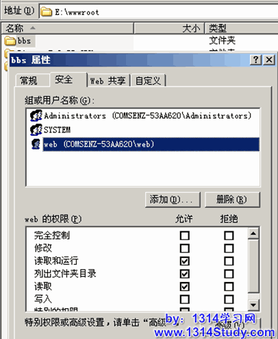 只给sysytem,administrator,web权限,web用户权限只给 读取和运行、列出文件夹权限、读取。