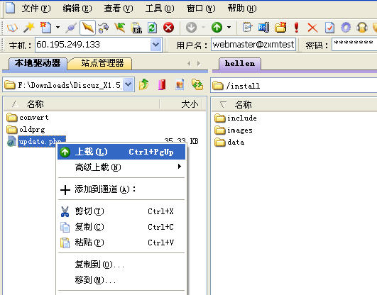 4、上传 Discuz! X1.5 程序到您的站点目录覆盖旧程序。